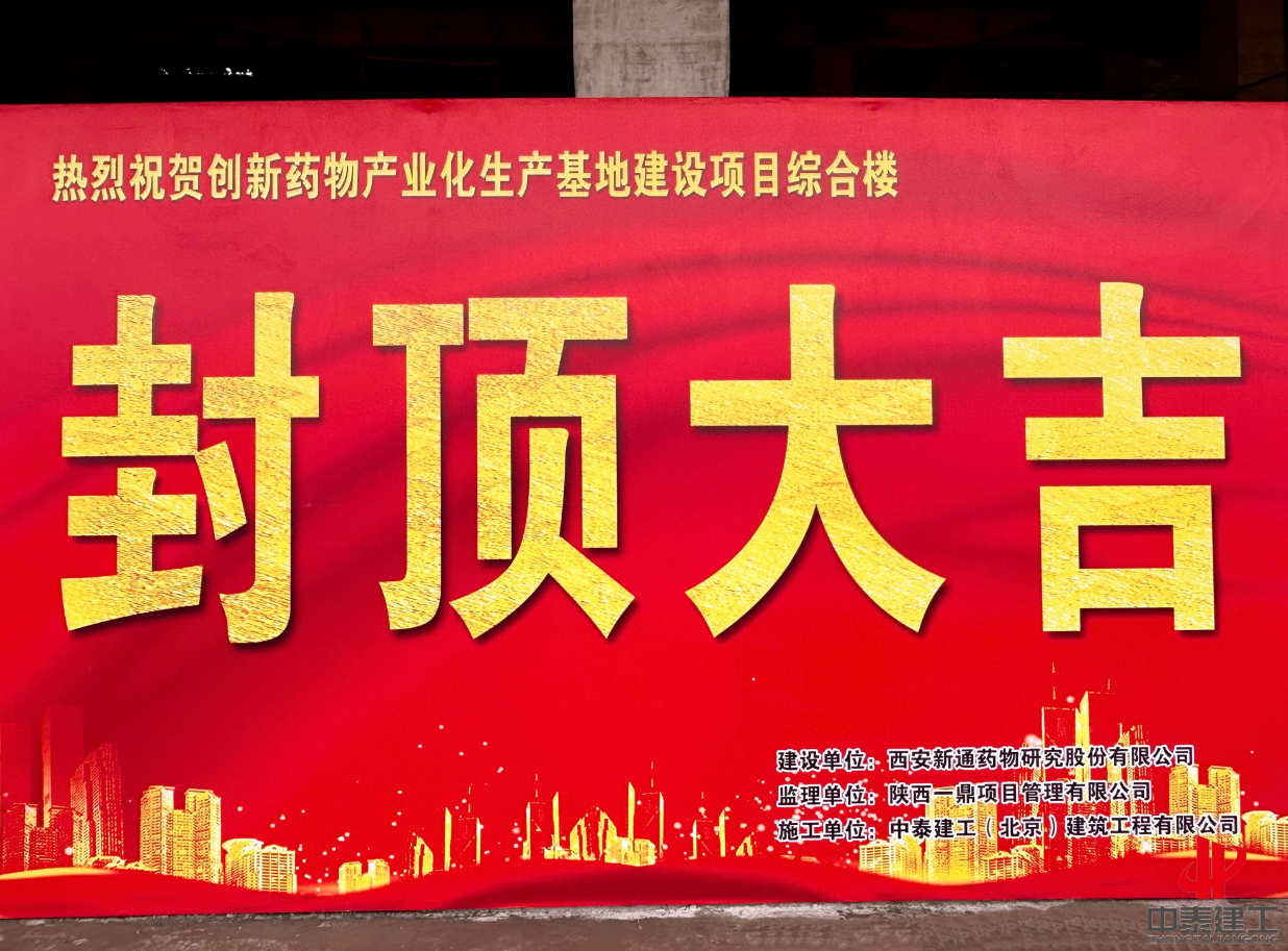 封頂大吉!中泰建工承建創新藥物產業化生產基地主體結構圓滿封頂
